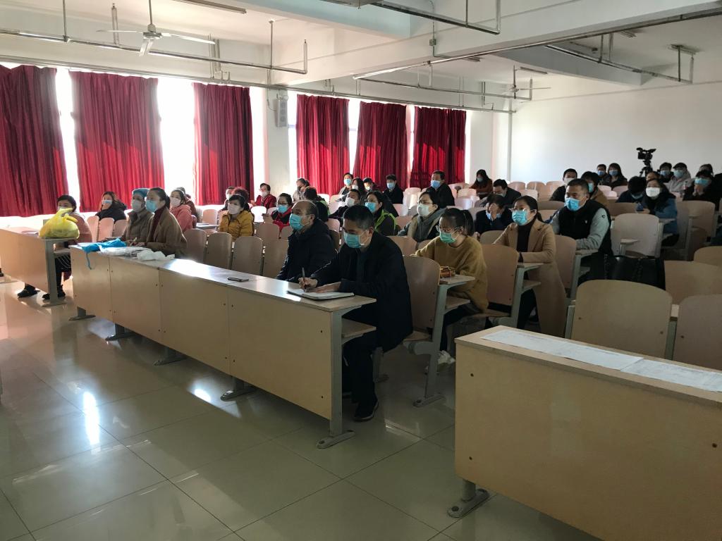 为了做好新冠肺炎疫情防控期间学院的卫生消杀工作,确保卫生消杀效果,打赢疫情防控阻击战,4月11日下午,学院在二教303教室开展新冠肺炎疫情防控消杀专项培训,特邀莱山区疾控中心赵万里科长担任主讲人。党委书记唐家弘,相关职能部门负责人,后勤部保洁人员、食堂负责人,学工部学生公寓、教学楼管理人员参加培训。校医院院长吴承峰主持培训。