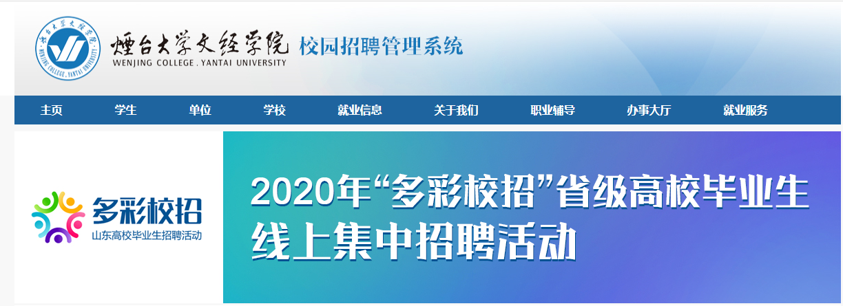 根据山东省人力资源和社会保障厅的工作部署要求,招生就业部积极应对、精心筹备、认真组织,开启网络“云”招聘模式,3月5日-5月15日我院共举办两场大型网络招聘会—“多彩校招”省级高校毕业生线上集中招聘活动暨烟台大学文经学院2020届毕业生春季网络招聘会,积极克服疫情影响,全力做好2020届毕业生就业工作。