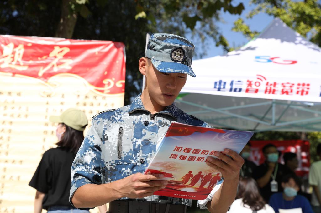 在特殊疫情的背景下,学院始终将师生安全放在首位。医护工作者为新生入学提供保障;安保人员在校门口坚守岗位,并配置红外线扫描仪来测量体温;宿舍内定期消毒、实时测量、及时隔离;在正值国防宣传日的今天,学院特地派出教官队伍,来进行国防宣传教育,学工部张老师表示,希望有更多得有志青年加入,来学习军人为人民服务的精神,激发他们的爱国情怀。