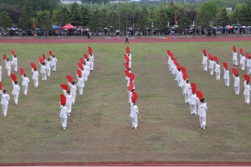 文体表演中,舞龙舞狮,热情洋溢,舞送吉祥;太极表演,武扇与太极拳的刚柔并济,尽显中华文化之美;欢快的旋律中,健美操方队在绿茵场上跳动着生命的韵律,迸发出运动与健康的魅力;散打方阵中,他们满怀热血,英勇奋进,展现出我校学子积极向上的精神面貌;教工艺术团体育舞蹈协会带来激情昂扬的啦啦操,展现教师独特风采。