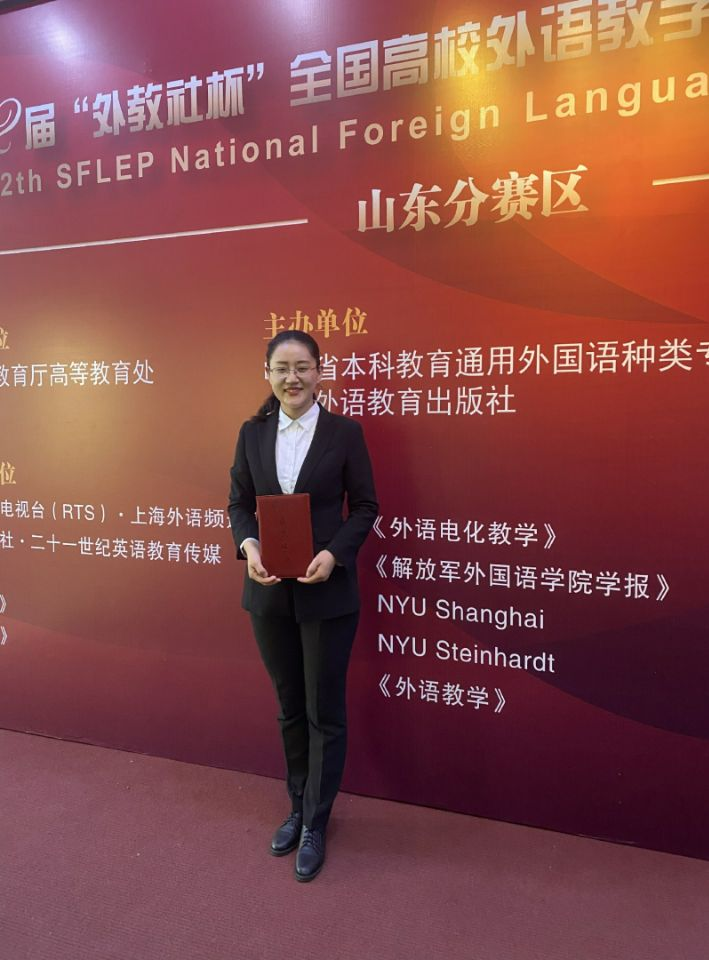 在英语专业组的复赛中,张婧老师同来自中国海洋大学、山东师范大学、山东财经大学、山东理工大学等众多高校的优秀外语教师同台竞技决赛。经过决赛的激烈角逐,张婧老师以总排名第五名的优异成绩,斩获英语专业组山东赛区二等奖。