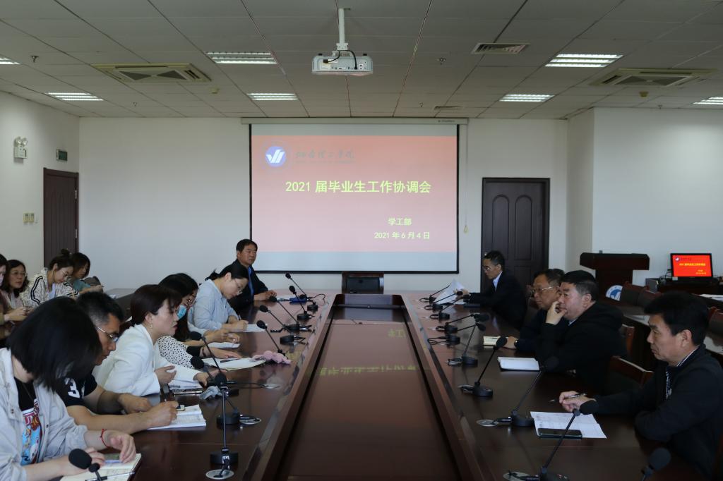 为做好常态化疫情防控下的2021年毕业生文明离校工作,6月4日上午,学校召开2021届毕业生工作协调会,副校长王宪杰、张仁杰;各二级学院党团书记、相关职能部门负责人、负责毕业工作的辅导员老师参加会议。会议由副校长张仁杰老师主持。