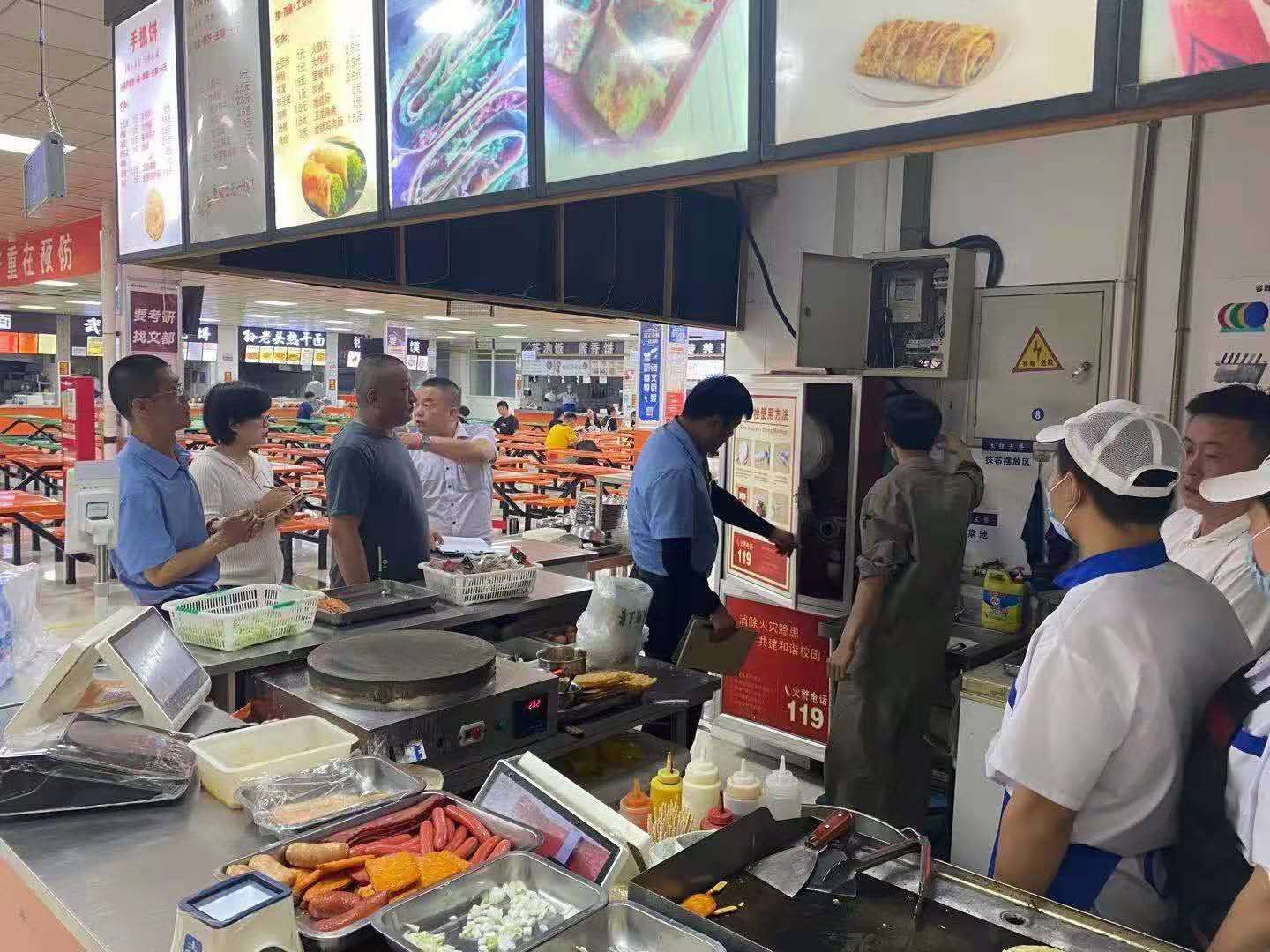 6月1日至6日,后勤处会同学工处、保卫处组成联合检查组,连续多日巡回检查校内商铺、食堂等公众场合,进行安全隐患排查,严格查处违规用电、用气或出售过期食品等安全问题,要求经营户禁止向学生出售瓶装酒类饮品,并在保证书上签名,以避免学生饮酒后摔瓶闹事,保障了良好的教学秩序。