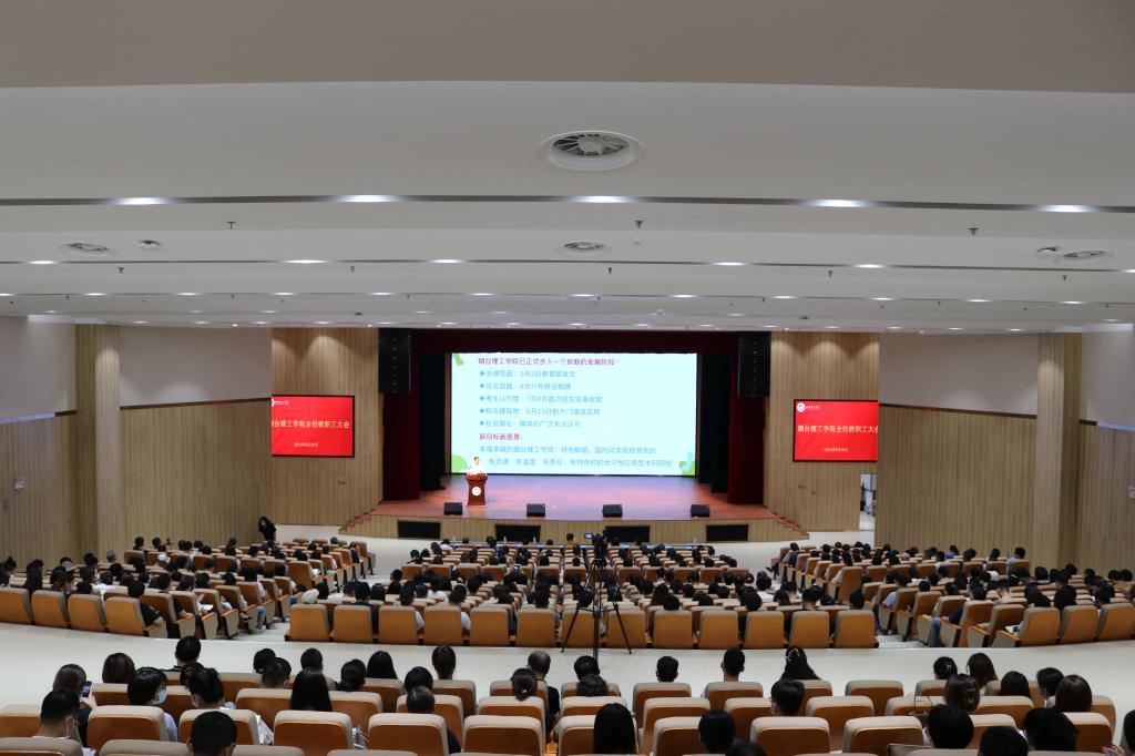 8月26日上午,我校在实验大楼一楼报告厅召开新学期全校教职工大会,全体校领导与教职员工与会。校长于光辉在会上发表了题为《坚定信念 乘势而为——为建设幸福卓越的烟台理工而继续努力奋斗》的重要讲话,围绕当前面临的形势和任务、上半年工作总结、下半年工作的部署以及做好下半年工作的几点要求进行阐述。