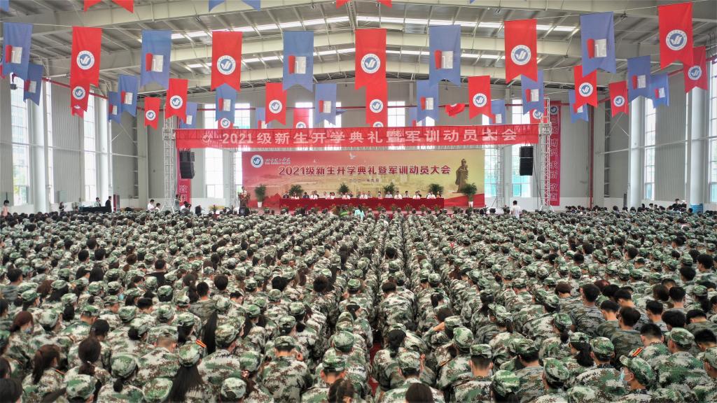 典礼结束后,学校召开2021级新生军训动员大会。副校长张仁杰做军训动员。他要求同学们要以军训为起点,端正态度、安全有序,严守纪律、迎难而上,团结友爱、铸就品格。努力练就能吃苦的“硬脊梁”,锻造能担当的“宽肩膀”,掌握能成事的“真本领”,努力成长为担当民族复兴大任的时代新人,用实际行动展现当代大学生的青春风采!文法学院学生安玉鹏作为教官代表向全体师生表达了对圆满完成军训任务的决心:遵规守纪、言传身教、科学施训、服从命令。