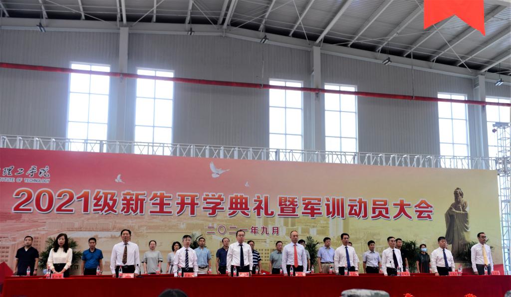9月14日上午,烟台理工学院2021级新生开学典礼暨军训动员大会在文体中心隆重举行。董事长辛军、校长于光辉、董事会秘书长徐荣哲,副校长王宪杰、苏春景、辛连军、张仁杰,校长助理张中华、莫红菊出席大会,相关职能部门、各学院负责人、全体辅导员、2021级新生班主任与全体2021级新生共同见证这一难忘的历史时刻。大会由副校长王宪杰主持。