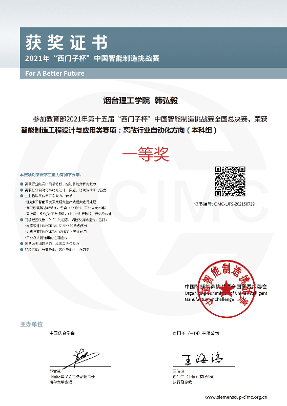 2021年11月8日至13日,第十五届“西门子杯”中国智能制造挑战赛总决赛落下帷幕。人工智能学院李超副教授带领胡海亮、韩弘毅、刘钦三名同学组成的AG队,荣获全国总决赛离散行业自动化方向一等奖。同时,李超副教授荣获“全国优秀指导教师”荣誉称号。