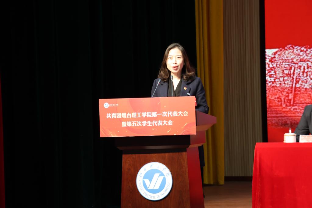 共青团烟台市委学少部部长、市学联秘书长张慧代表共青团烟台市委和烟台市学联向大会的召开表示热烈的祝贺。她在讲话中充分肯定了烟台理工学院共青团在各方面取得的突出成绩。并希望烟台理工学院在学校党委的坚强领导下,切实提高政治站位,筑牢青年的思想根基,团结带领广大团员青年坚持围绕中心,服务大局,继续深化改革、锐意创新,为实现学校新的发展和推动烟台高质量发展做出青春贡献!