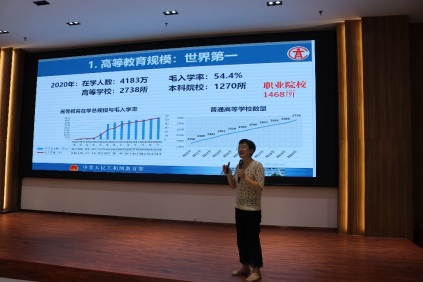 苏春景副校长为新入职教师做了题为《科研为先导理念下高校新教师专业规划的设计与思考》的专题报告。报告中他首先阐述了高校科研工作的重要性,结合新时代的教育理念,对应用型高校青年教师如何做好科研工作以实现自身专业化成长进行了详细的阐述。