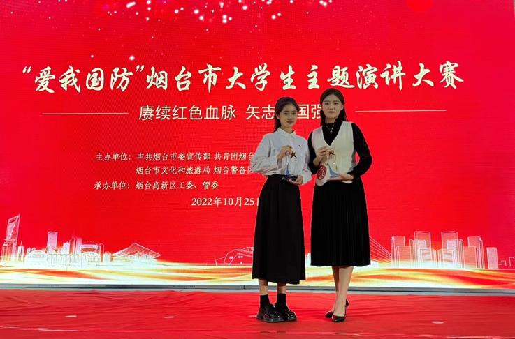 10月25日,我校学子刘孟晗、陈雅琪在“爱我国防”烟台市大学生主题演讲比赛中表现优异,荣获得烟台市三等奖两项。