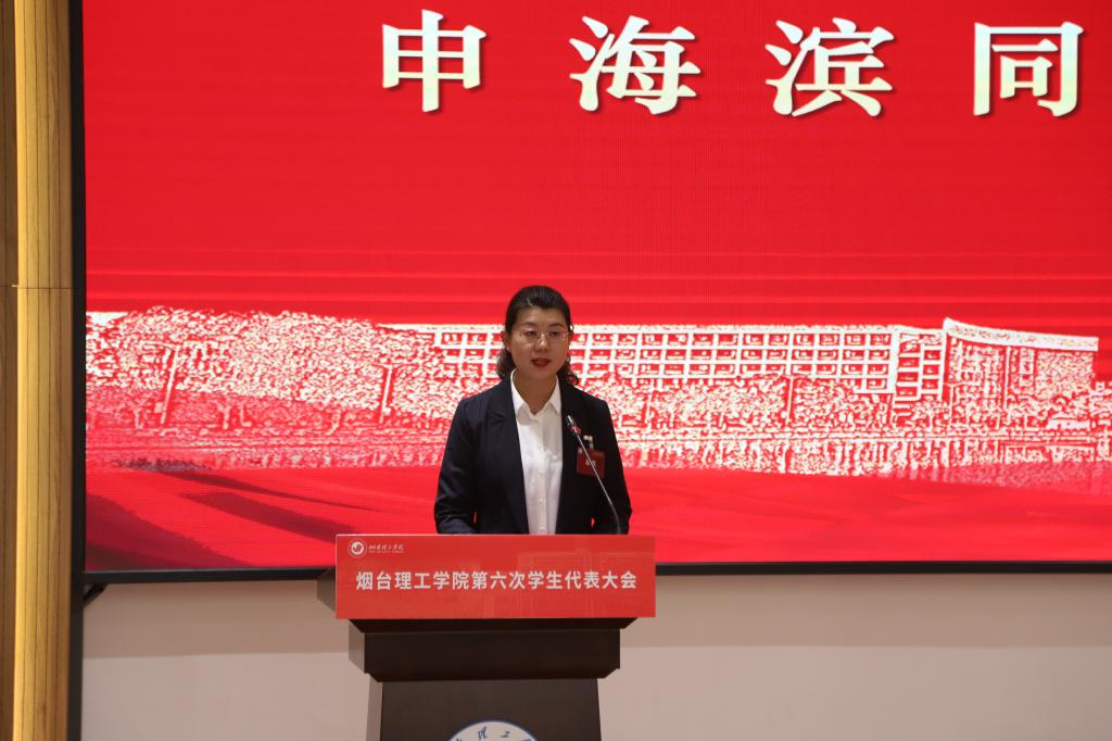 11月13日,烟台理工学院第六次学生代表大会在综合楼六楼报告厅召开。来自全校十个学院的182名学生代表齐聚一堂。烟台理工学院党委委员、校长助理杜娟、校团委书记申海滨、各二级学院党总支、团总支,书记、副书记应邀出席大会。