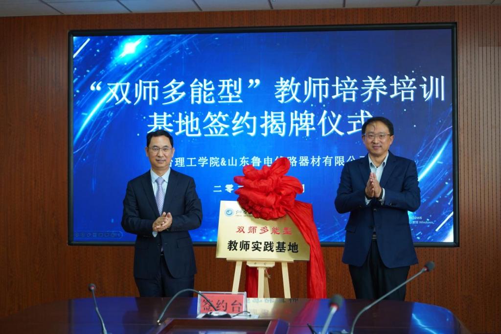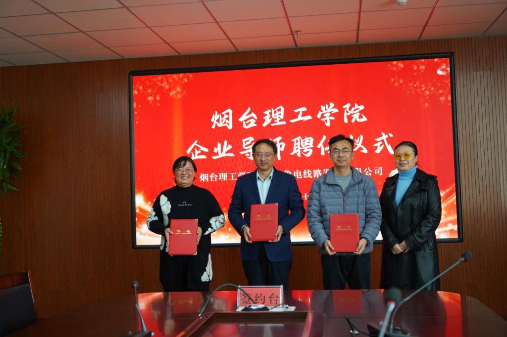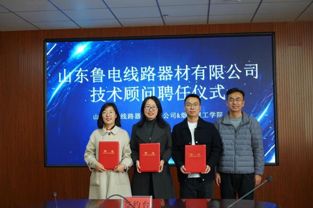 为进一步加强学校“双师多能型”教师队伍建设,促进校企合作、产教融合,提升教师实践教学能力,提高学校教育质量,烟台理工学院以电力金具研发中心成立为契机,与山东鲁电线路器材有限公司建立“双师多能型” 教师培养培训基地,并举行签约揭牌仪式。随后,校企双方分别为企业导师和技术顾问颁发聘书。