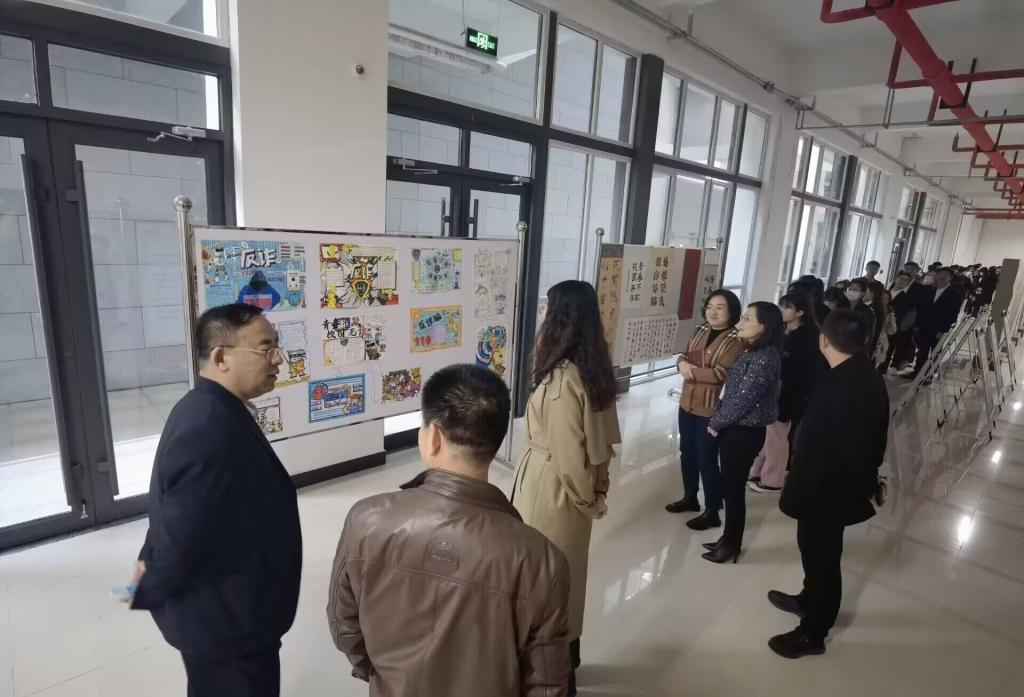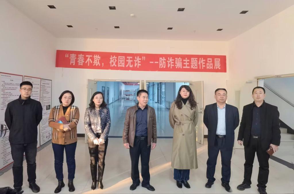 为进一步提高同学们的安全意识,提醒同学们以诚为本,以信立人,谨防诈骗,保护自身利益,11月23-28日,由校团委、保卫处主办,信息工程学院承办的“青春不欺,校园无诈”防诈骗主题作品展于综合楼一楼大厅举行。校团委书记申海滨、保卫处处长高培力、信息工程学院党总支副书记王明印、团总支书记祝箐、全体辅导员及学生代表一同观看作品展。