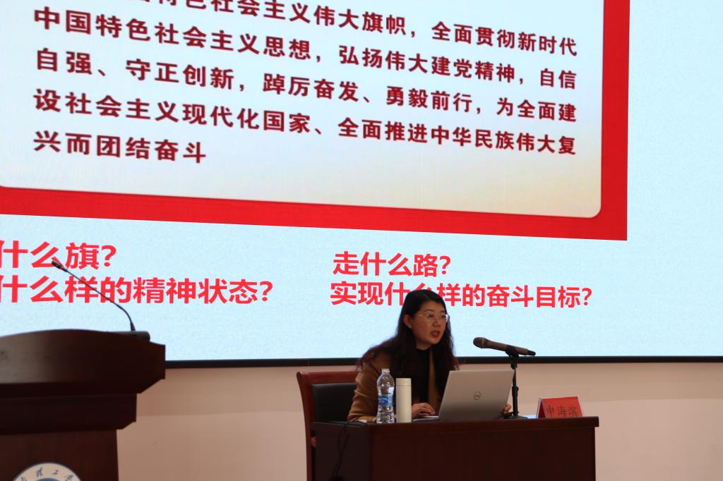 根据共青团山东省委关于开展“学习二十大、永远跟党走、奋进新征程”主题团队第一课的工作提示要求,3月10日中午,校团委在综合楼六楼报告厅开展党的二十大精神宣讲暨新学期共青团工作部署会。校团委书记申海滨担任主讲人,团委全体人员和全校团学骨干参加。