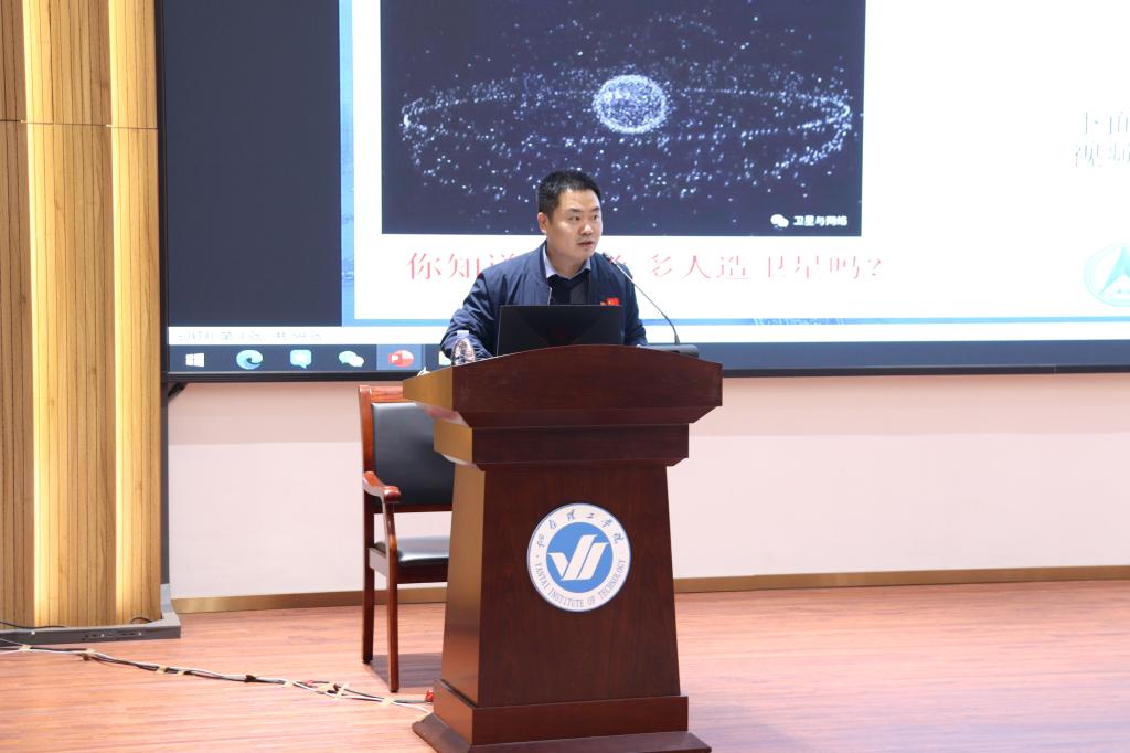 为弘扬航天精神,深入理解航天精神内涵,积极为同学们营造崇尚科学、推动创新、建设科技强国的良好氛围。3月23日晚由校团委主办的知行讲堂邀请到航天科技集团五一三所航天精神宣讲师吴宦龙在综合楼六楼报告厅做“弘扬航天精神,共赴星辰之约”主题讲座。航天科技集团五一三所团委书记艾青、烟台理工学院团委书记申海滨出席本次活动,各二级学院的同学们前来聆听。