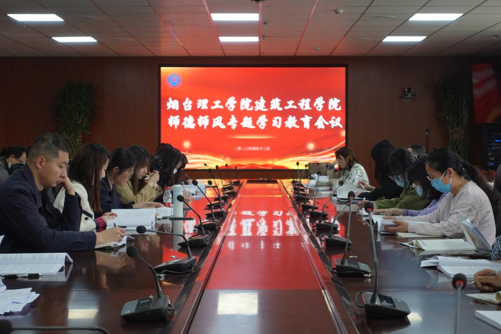为进一步加强师德师风建设,增强教师的责任感,强化教师思想政治素质,营造良好的教育教学氛围。4月13日下午2:00,建筑工程学院于综合楼六楼视频会议室组织召开师德师风专题学习教育会议,建筑工程学院全体教职工参加此次会议。