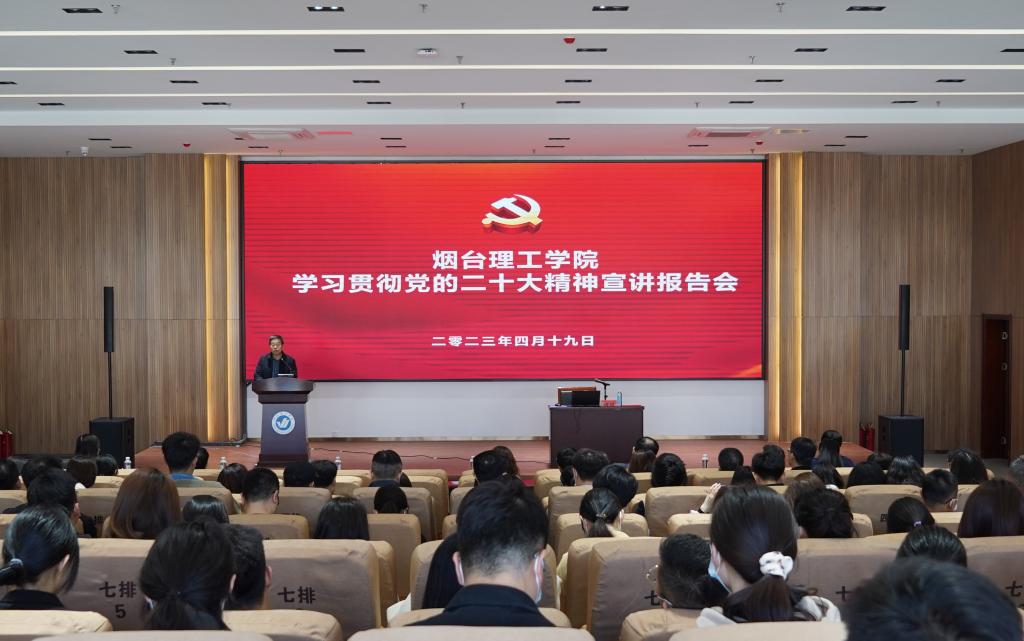 为深入学习宣传贯彻党的二十大精神,根据党中央部署和省委市委要求,4月19日,烟台理工学院特邀省属高校学习贯彻党的二十大精神宣讲团成员、山东工商学院刘冰教授作党的二十大精神宣讲报告。校领导,各二级学院党总支书记、副书记,职能部门负责人和师生党员200余人参加报告会,党委书记盛国军主持会议。