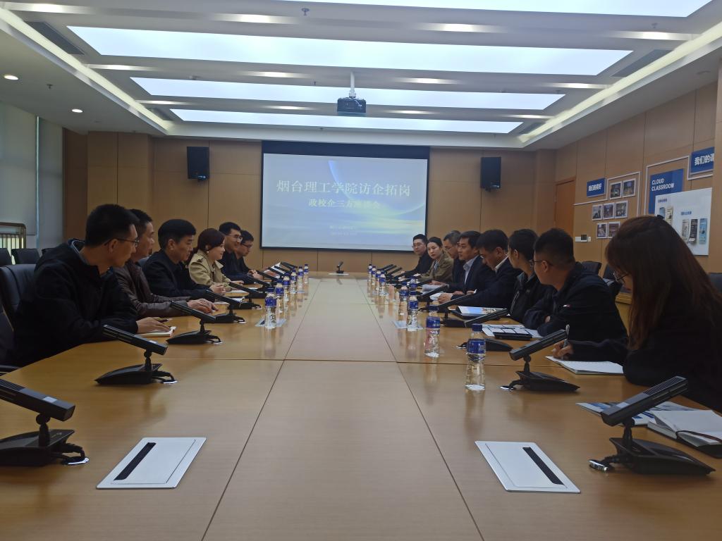 为了贯彻落实访企拓岗促就业专项行动,精准对接人才需求,进一步开拓就业渠道和就业岗位,扎实推进2023届毕业生就业工作,4月19日,校长助理李洁带队前往烟台市黄渤海新区人力资源和社会保障局开展访企拓岗促就业专项行动。黄渤海新区人社局副局长崔荣坤、人才综合处处长王伟君,烟台金鹏集团、烟台艾迪精密机械股份有限公司、山东汉能智能装备有限公司、烟台宇信科技有限公司人力资源部负责人,人工智能学院、信息工程学院、机电工程学院党总支书记参加交流座谈会议。会议由黄渤海新区人社局就业促进处处长迟绍丁主持。