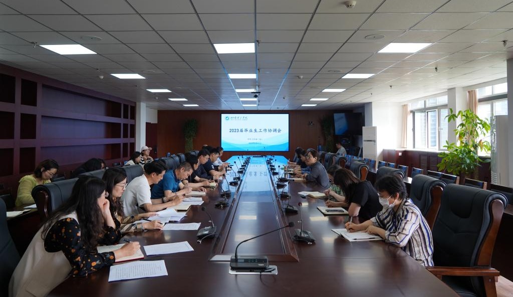 为切实保证毕业生离校工作顺利进行,我校于5月31日下午在综合楼六楼视频会议室召开2023届毕业生工作协调会。校党委书记盛国军,校长助理、招生就业处处长李洁,校长助理、学生工作处处长杜娟,相关职能部门负责人及各学院党总支书记参会。