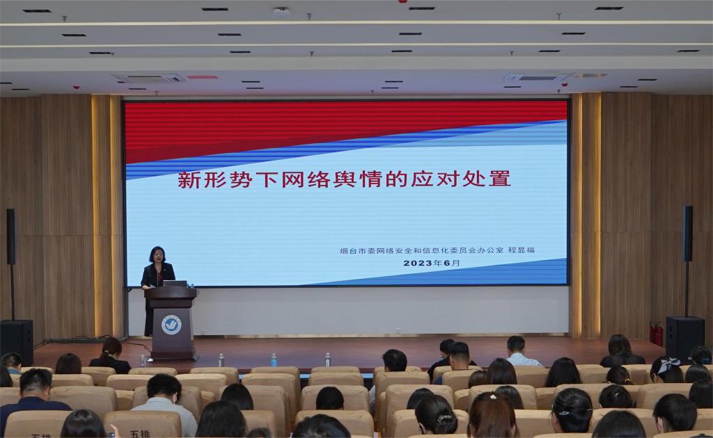 8日下午,我校在综合楼六楼报告厅举办了《新形势下网络舆情的应对处置》专题讲座,特邀烟台市委网络安全和信息化委员会办公室副主任程显福主讲,校长助理李洁出席,各职能部门负责人,各学院党总支书记、副书记,全体辅导员,各单位宣传员,舆情联络员,网评员聆听了讲座。讲座由党委宣传部部长杨帆主持。