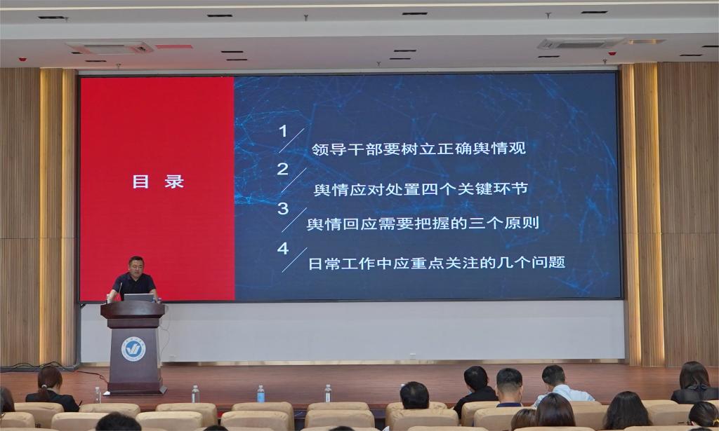 程显福从树立正确舆论观、舆情应对处置四个关键环节、舆情回应需要把握的三个原则、日常工作中应重点关注的几个问题四个方面,结合丰富的案例和实践知识,生动地讲解了网络安全的重要性和网络舆情的正确应对方式,强调要正确认识线下工作处置与线上舆情应对的关系,提高舆情研判能力,掌握舆论引导主动权。