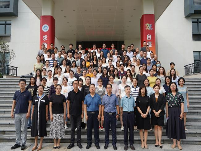 党委书记盛国军为新入职教师作了主题为《以习近平教育思想为指导,努力做新时代优秀教师》的报告,他结合自身丰富的教学与管理经验,向新教师阐释了新时代“四有”好老师的内涵与理念,鼓励新教师培养自身的道德情操,夯实自身的专业基础,树立明确的生涯规划,将教书和育人相统一,做奉献祖国的引路人。