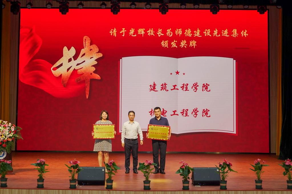 奋斗成就梦想,行动诠释愿景。校长于光辉代表烟台理工学院向受到表彰的先进集体和个人表示祝贺,对新加入烟理工大家庭的青年教师表示欢迎。于校长讲述了三个与学生之间的温馨故事,描绘出作为一名职业教师的幸福感,并结合学校发展提出三点期待:一是坚守教育初心,做学生成长成才的引路人。二是积累扎实学识,践行“适合的教育”,让学生更幸福,让社会更美好。三是树立“和合”理念,紧跟学校内涵发展步伐,构建和合教育共同体。于校长强调,希望全体教职员工认真学习贯彻习近平总书记关于师德师风方面的重要讲话精神,深刻认识教师在教育强国、科技强国、人才强国建设中肩负的光荣使命与重大责任,牢固树立“躬耕教坛,强国有我”的志向与抱负,争做“四有好老师”,当好“四个引路人”。