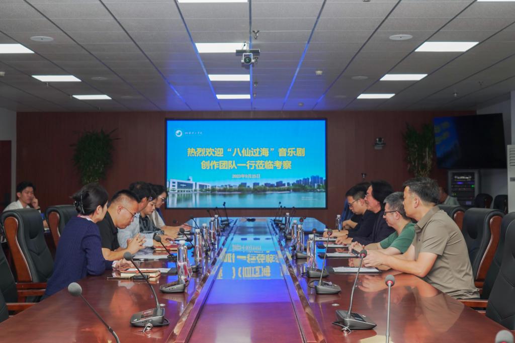 25日下午,“八仙过海”音乐剧创作团队,何里活(深圳)音乐剧产业发展有限公司董事长、制作人李盾,著名音乐剧编剧、词作家关山一行来校考察合作,座谈会在综合楼六楼视频会议室举行,烟台市委常委、宣传部部长吕波等市领导出席座谈并会见了创作团队。