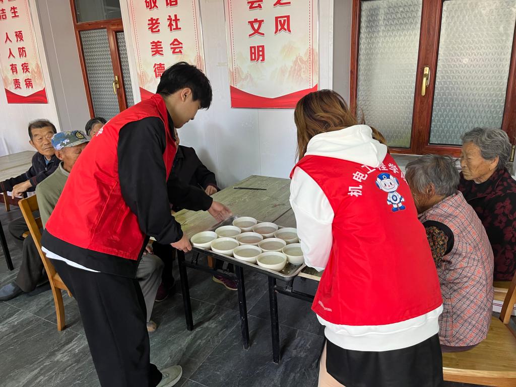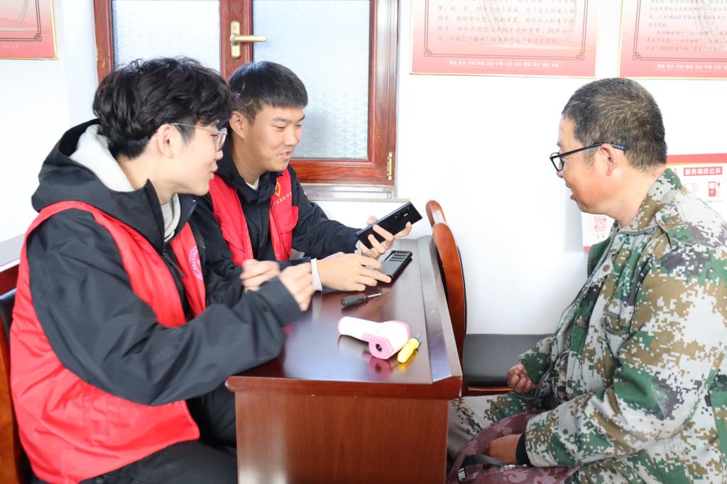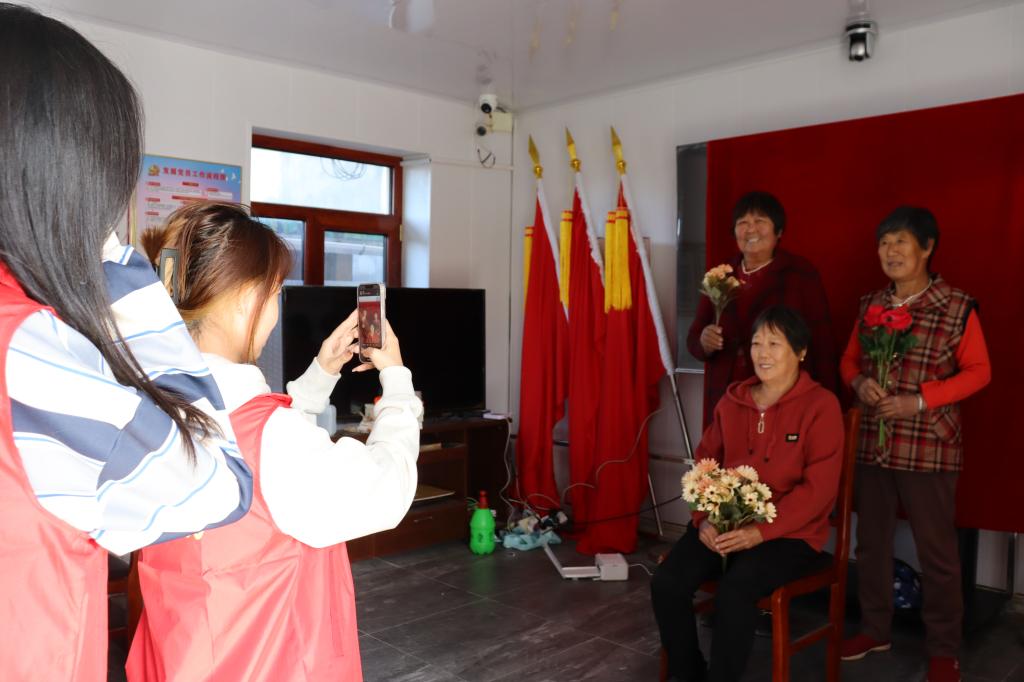 演出结束后,志愿者们分头开展志愿服务活动。在村里的老年食堂,志愿者们帮助食堂工作人员收拾餐厅卫生,处理食材,为老人们准备午餐、将热腾腾的饭菜端到老人面前;在村委办公室,志愿者们布置了简易的夕阳红照相点,为老年人拍摄照片,记录最美的容颜,定格美好的瞬间;“创优维芯”服务队的志愿者们在村委大院拉起了宣传横幅,设点进行小家电、电脑义务维修,教老年人使用智能手机,宣传电器安全等生活常识;在农场区,志愿者带领孩子们开展绘画、标本手作等趣味活动。