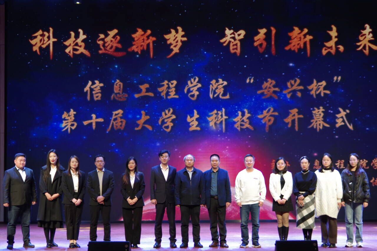 为培养大学生的科技创新思维,充分发挥学科专业优势,不断提升学生创新软实力,11月17日晚,信息工程学院第十届大学生科技节开幕式于综合楼一楼多功能厅拉开帷幕。副校长王培进,校团委书记申海滨,济南安兴电气科技有限公司总经理杜兴华、副总经理邓茜、程泽昱,学院全体领导、各学科竞赛指导老师及辅导员出席了开幕式。本次大学生科技节得到了济南安兴电气科技有限公司的赞助和支持。