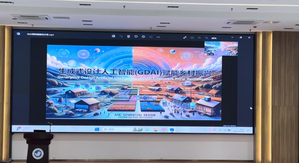 范凯熹教授的《AIGC生成式设计助力乡村振兴》为大家介绍了乡村设计的新工具GDAI,并呼吁高校和企业更多去关注乡村设计的创新和实际意义,建立富有乡镇特色的乡村设计学系统,为国家实施乡村振兴战略贡献学科的力量。