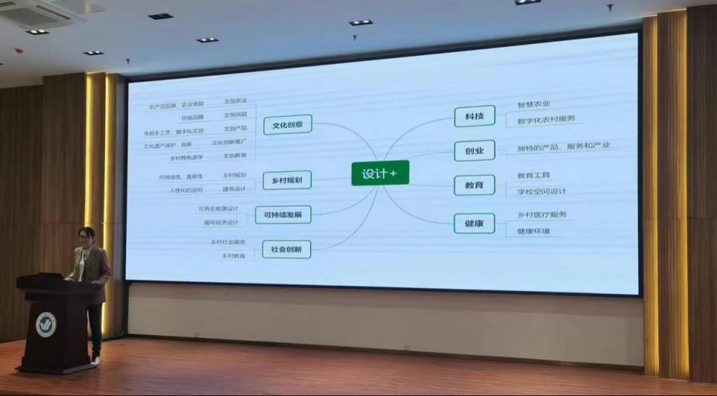 我校建筑工程学院田娜副教授通过“设计+”思维概念的解读讲述了艺术专业的师生如何通过“设计+”思维完成了系列教科研成果,利用文化创意助力乡村振兴。
