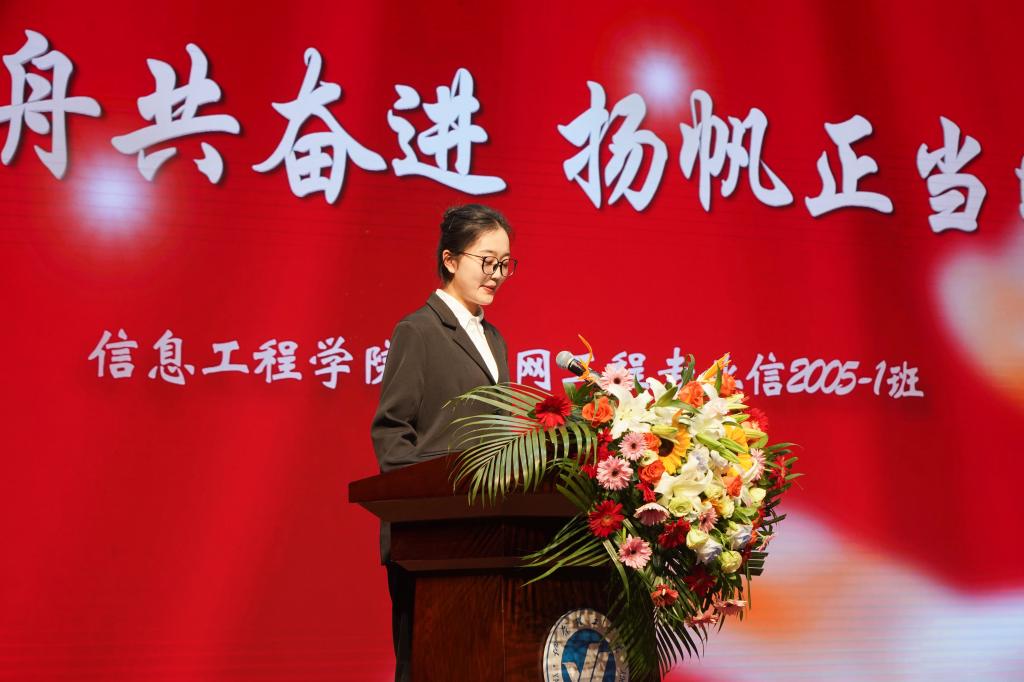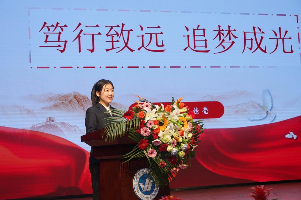 青衿之志,履践致远,荣光属于积极进取、不懈追求的人。国家奖学金获奖代表建筑工程学院李佳莹同学讲述了她笃行致远、追梦成光的成长之路,省政府奖学金获奖代表人工智能学院李若晨同学分享了自身学科竞赛的备赛经验,先进班集体代表信2005-1班刘亚迪介绍了班级建设的成绩与特色及优秀班风的经验。学风建设先进单位获奖代表机电工程学院党总支书记邓之增老师就学院班级建设思路、情况、计划进行了分享。