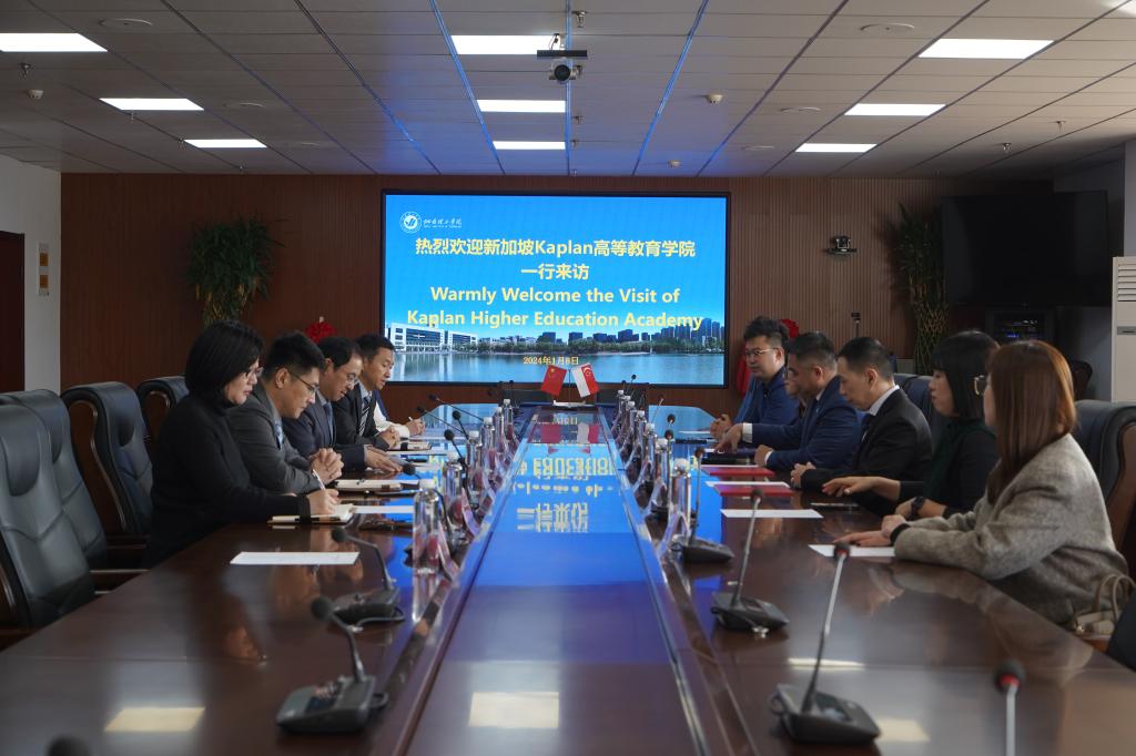 1月8日,新加坡Kaplan高等教育学院副校长柯永全、国际招生主任江国光、北京飞凡禾硕教育董事长刘亚楠一行来访我校,校长于光辉、副校长夏毅会见来宾。外事处、国际教育学院相关负责人参加会谈。