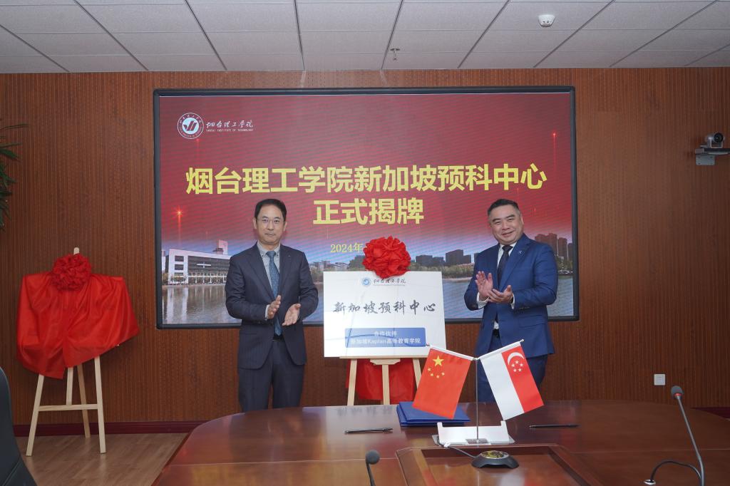 随后烟台理工学院校长于光辉、新加坡Kaplan高等教育学院副校长柯永全签署合作备忘录,并为烟台理工学院新加坡预科中心揭牌。副校长夏毅、北京飞凡禾硕教育董事长刘亚楠为烟台理工学院新加坡教育中心揭牌。