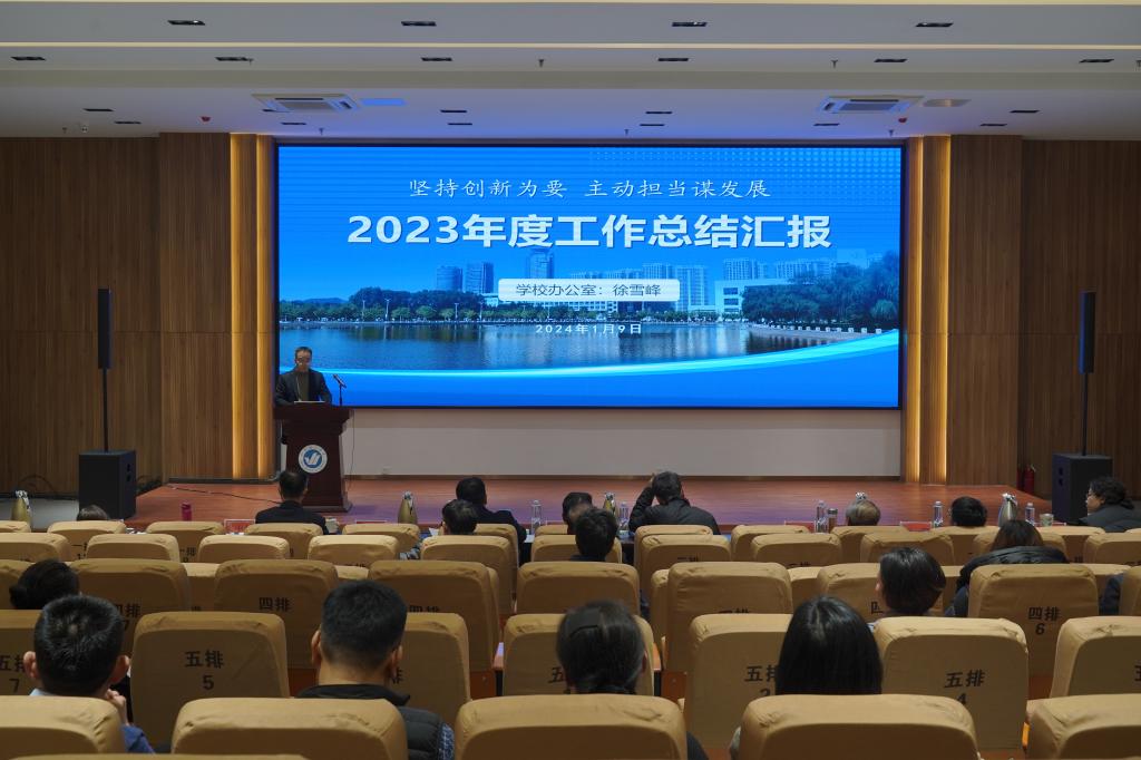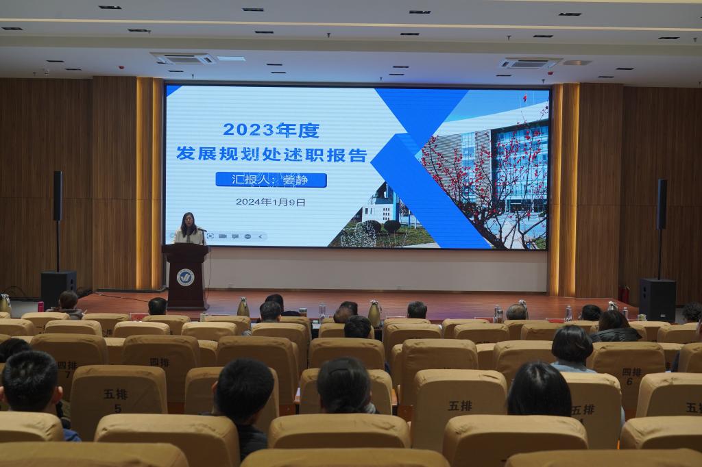 为全面总结2023年工作成效,深入研判当前形势,明确思路举措,更好推动2024年工作开新局、谋新篇。1月9日,学校于综合楼六楼报告厅召开2023年度部门负责人述职考评会。全校中层以上干部及高层次人才参加会议。会议由副校长苏春景主持。
