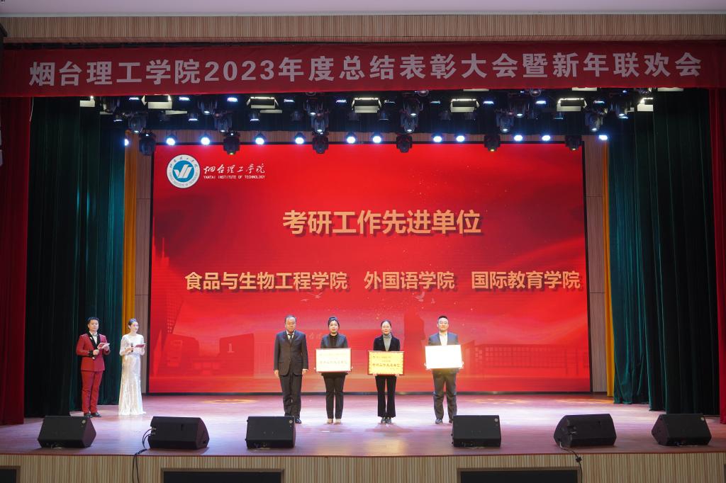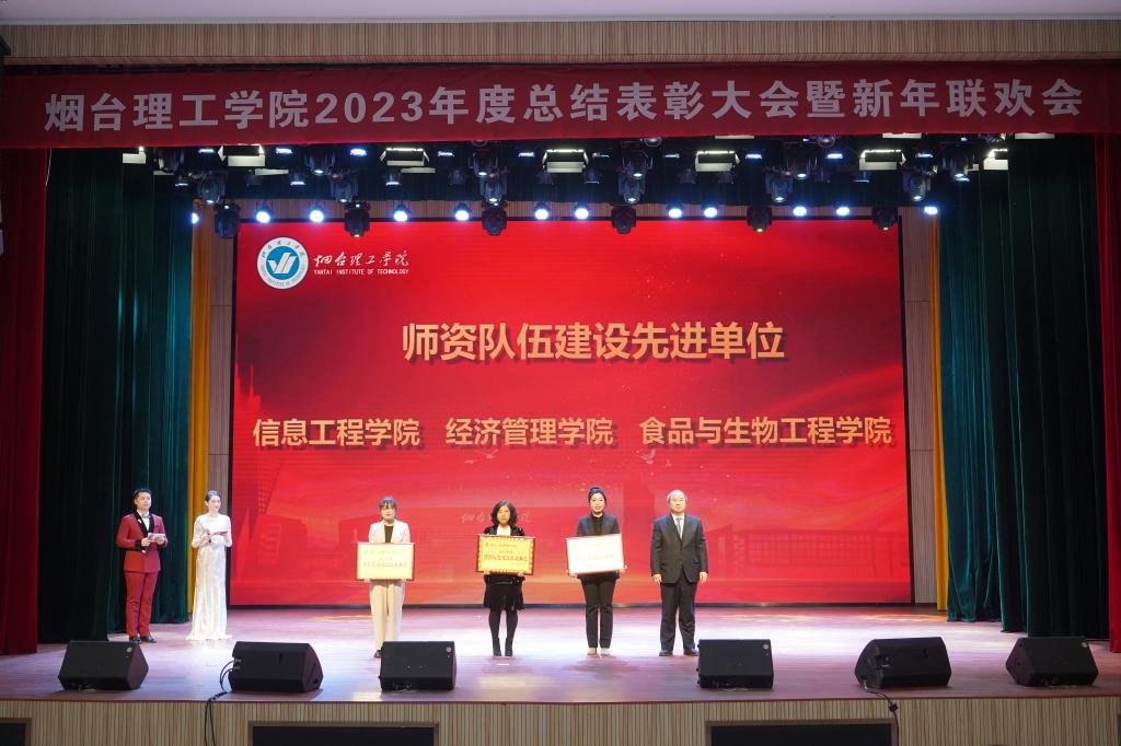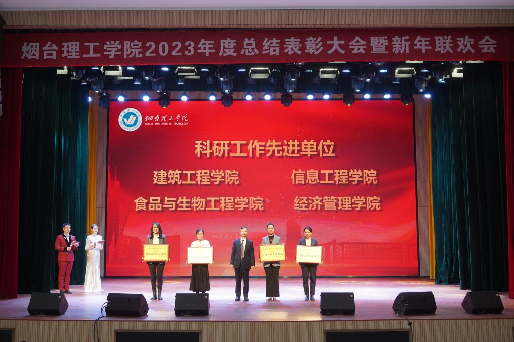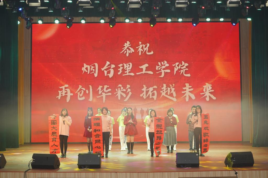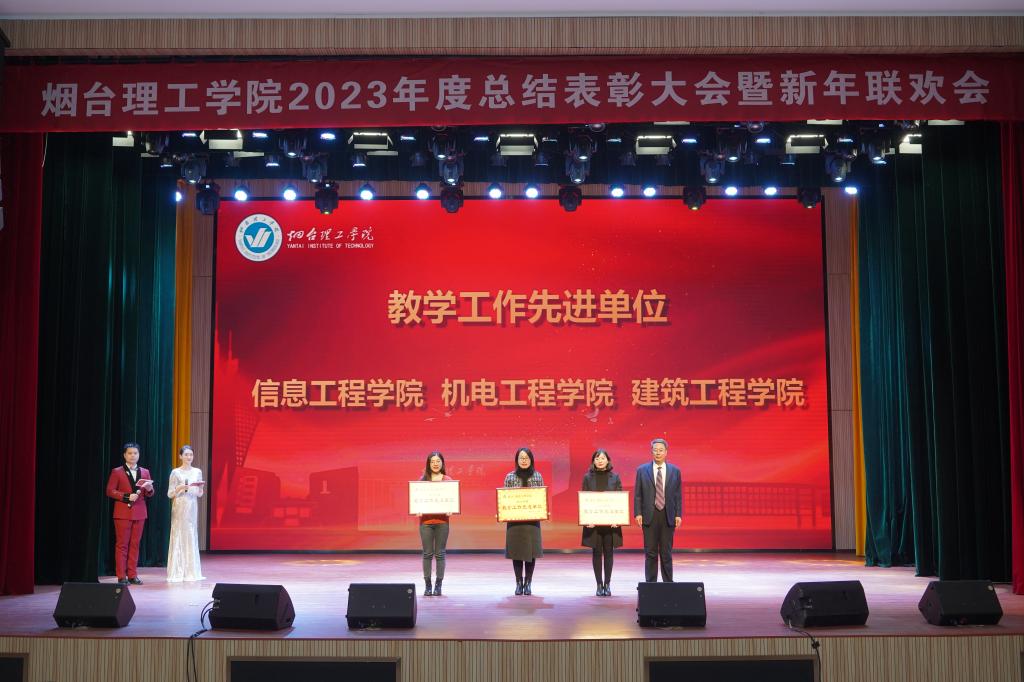 廿载芳华迎龙年,腾飞奋进烟理工。1月16日下午,烟台理工学院2023年度总结表彰大会暨新年联欢会在综合楼一楼多功能厅隆重举行。学校董事长辛军、董事会秘书长徐荣哲、学校领导班子成员出席大会,与全体教职员工欢聚一堂,共话喜悦、共庆新春。