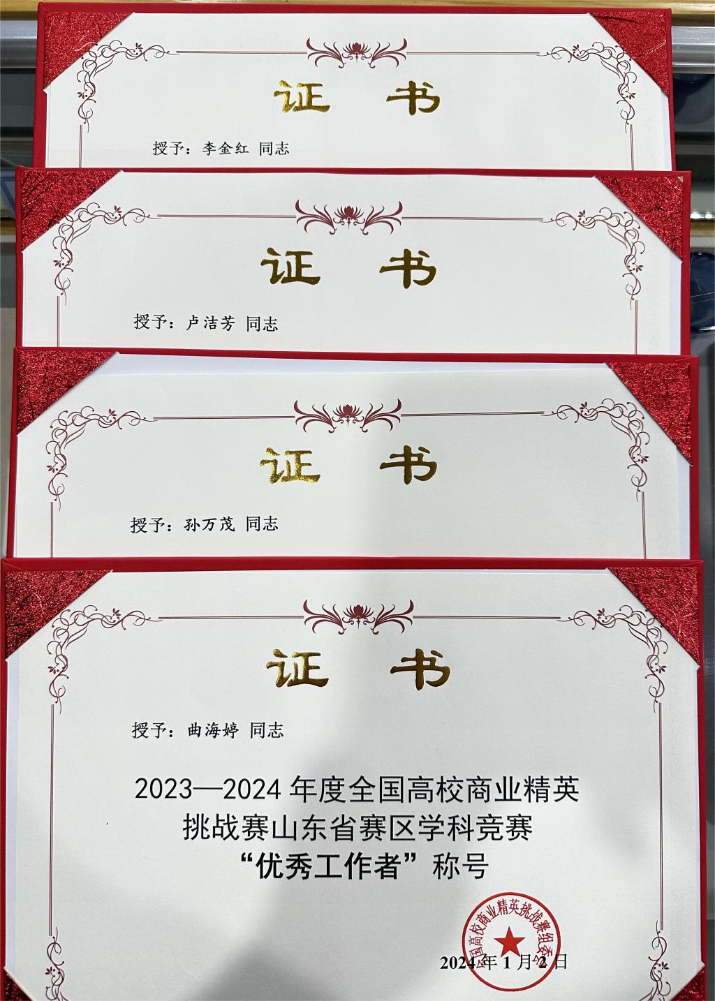 近日,全国高校商业精英挑战赛组委会对2023-2024年度组织管理有力、学生参与广泛、成果突出的优秀高校给予表彰奖励。烟台理工学院首次获得年度“优秀组织单位”称号,外国语学院商务英语专业教师孙万茂、曲海婷、卢洁芳、李金红获得全国高校年度“优秀工作者”称号。孙万茂正式获聘2021-2025年“专家委员会委员”,主要负责竞赛题库建设、省级竞赛评审等工作。