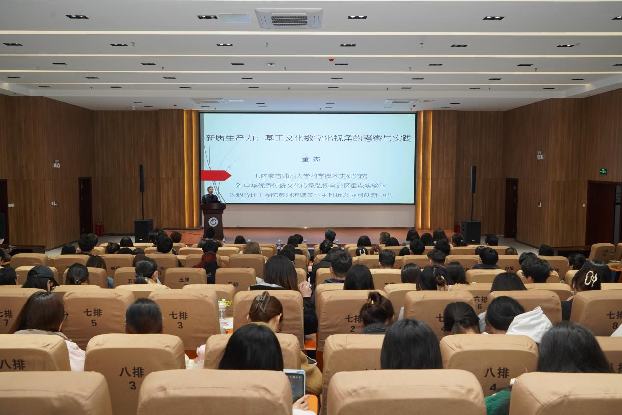 为发挥我校黄河流域美丽乡村振兴协同创新中心的协同作用,深入探讨新时代背景下黄河文化数字化和产业发展的融合之路,近日,协同中心特邀协同单位内蒙古民族文化产业研究院、内蒙古师范大学博士生导师董杰教授在我校综合楼报告厅举办“新质生产力:基于文化数字化视角的考察与实践”的专题讲座,科研处、发展规划处、建筑工程学院、经济管理学院、文法学院、外国语学院、信息工程学院的相关领导及师生二百余人参加此次讲座,副校长苏春景教授主持会议。