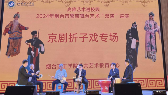 为弘扬中华民族优秀传统文化,展现国粹精华,让师生感受传统文化的韵味与魅力,4月28日下午,由烟台理工学院公共艺术教育中心主办的“高雅艺术进校园”--京剧专场活动在我校综合楼一楼报告厅顺利举办,此次演出邀请到烟台市文化艺术中心京剧院和烟台市国粹金声京剧团的老师们为大家精彩呈现。