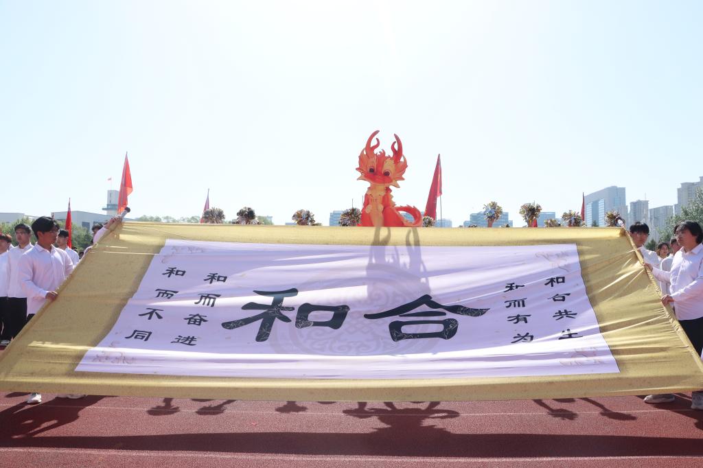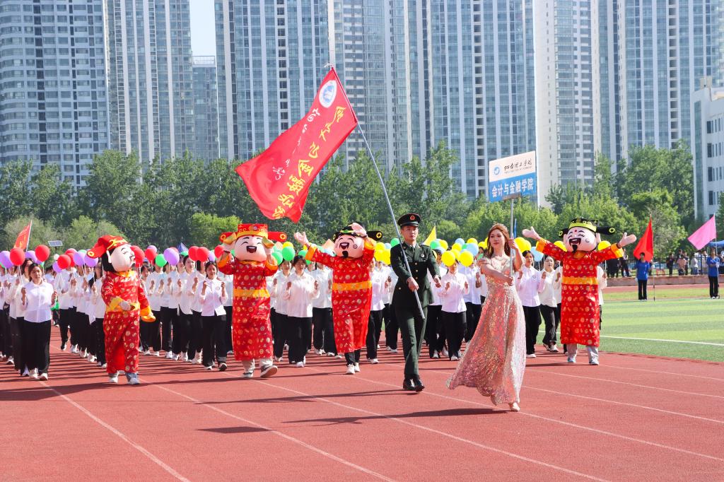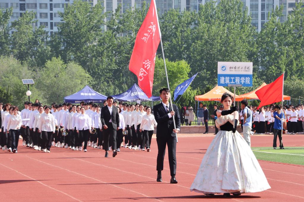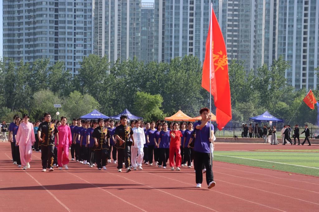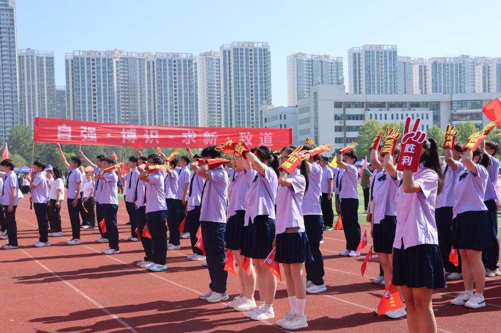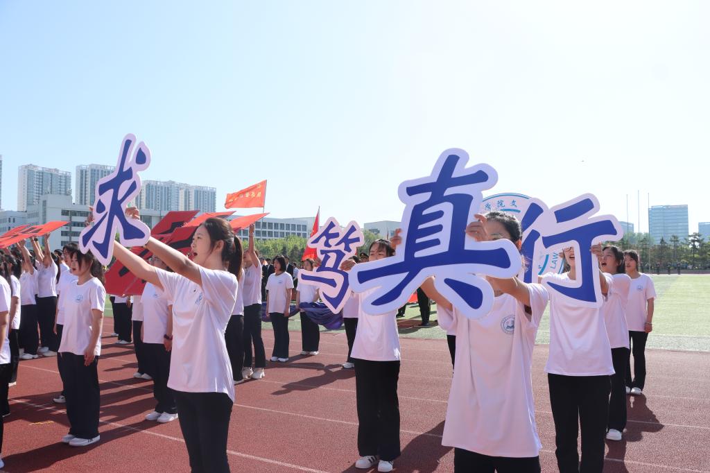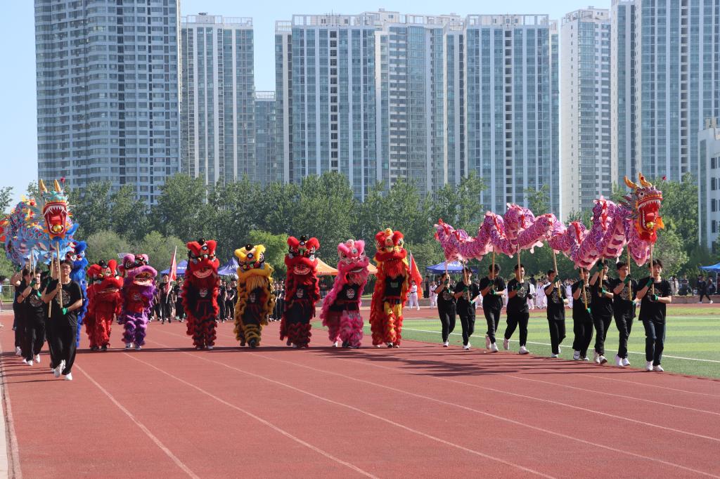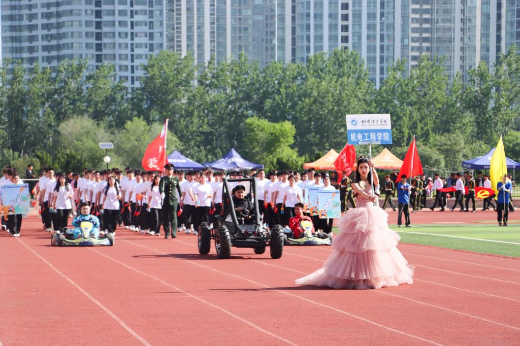 随着激昂的鼓乐声,国旗护卫队带领各方队以饱满的精神,整齐的步伐依次通过主席台。现场气氛热烈,别出心裁的展板、铿锵有力的口号、迎风招展的彩旗……,无不展示着师生们健康自信、昂扬向上的精神风貌。