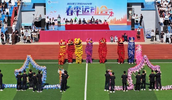 开幕式上还进行了精彩的文体节目演出,舞龙舞狮刚健有力,充分展示了传统民俗文化的特色;太极表演刚柔并济,动作连贯而不失节奏;健美操展现出了大学生青春的活力与激情;瑜伽用柔美的动作静觉心灵,一呼一吸,超觉超然;搏击拳将速度和力量融为一体,一招一式赢得场下观众阵阵掌声。