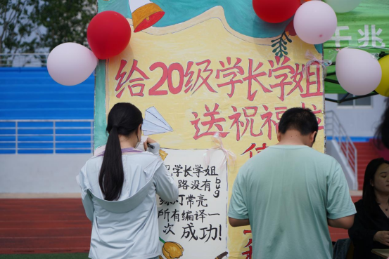 活动还设置了“心愿便利贴”与“毕了个业”留言环节,同学们纷纷写下自己的祝福与期待,一句句话语真诚地展现了自己对美好生活的期待及对即将毕业的学长学姐的诚挚祝福,也为本次活动增添了一抹亮色。游园会还为同学们提供了丰厚的奖品,同学们通过闯关集章的方式参与抽奖,兑换心仪的礼品,使本次活动更具趣味性。