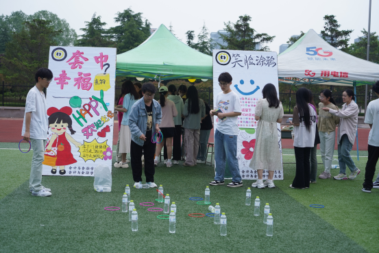 本次游园会分为团辅活动区、情绪表达区、心理知识区等,校内10余个单位共同参与。在团辅活动区设置了“百人接力画”“小手不要抖”及“珠行万里”等活动,激发同学们的潜能,增进彼此间的沟通,促进团队协作能力,进一步提升同学们的细心、耐心,培养良好的心理素质;在情绪表达区,同学们通过“套中幸福”、“情绪回收站”及“Emoji猜成语”等活动,宣泄负面情绪,释放压力,获得积极情绪,传递幸福力量;在心理知识区,为大家提供了“心理知识作答”“数随心动”及各类涉及心理理论的小游戏,让同学们在愉快的游戏氛围中了解心理学,掌握心理健康知识,实现自我成长。