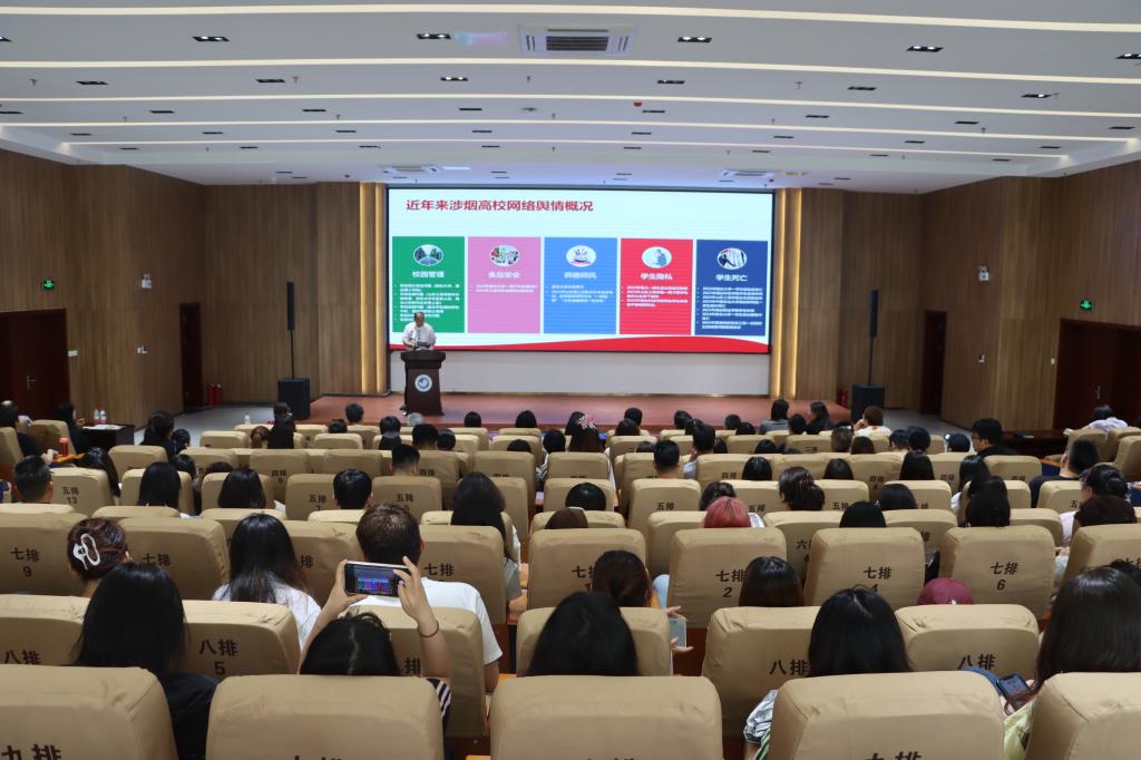 6月5日下午,学校特邀烟台市委网信办互联网信息中心主任袁圣凯为师生做了题为《抓住七个关键环节努力提高网络舆情应对的时度效》的网络舆情专题讲座。各职能部门负责人,各二级学院书记(副书记)、副院长,各单位舆情联络员、网评员及全体辅导员与会。党委宣传部部长杨帆主持。