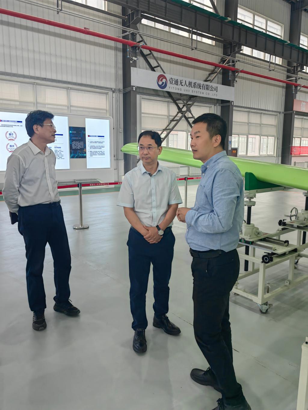 烟台业达经济发展集团董事长李建学,副总经理兼壹通无人机系统有限公司董事长陆建明,首席科学家董鹏生,总经理金舸等相关部门领导热情接洽了我校老师。首先,学校领导一行来到壹通无人机系统有限公司生产线,详细参观并了解了TP500大型无人运输机、TR100垂直起降固定翼无人机装配线,并观看了TP1000、TP2000大型固定翼无人运输机以及TP200、TR50多用途特种作业无人机的相关介绍。在之后的座谈交流环节,校企双方结合各自发展领域,针对下一步合作开展“低空经济”新质生产力深度协同、航空类无人机学科专业联合共建、产学研合作具体事宜,进行了热烈的探讨和交流,取得了广泛共识,并初步明确了下一步几项具体工作的推进意向。