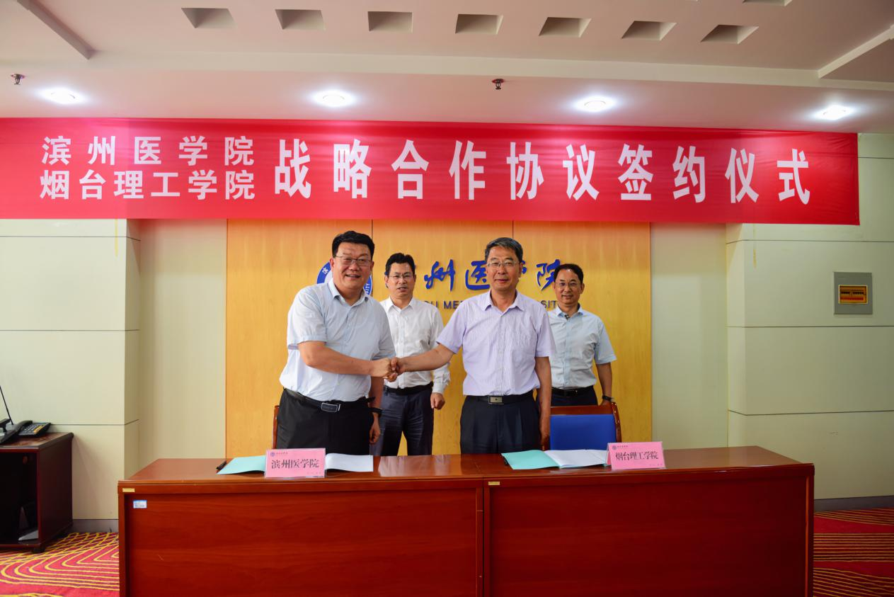为进一步深化教育教学、科研创新、人才培养等领域的交流与合作,共同推动地方高校高质量发展,6月13日上午,校长于光辉、副校长徐世艾一行前往滨州医学院,在图书办公楼九楼会议室举行战略合作签约仪式。滨州医学院党委副书记、院长黄飞,副院长赵景刚出席仪式,院长办公室、人力资源处、科学技术处、研究生处、合作发展处(服务地方办公室)、团委等部门负责人参与座谈。
