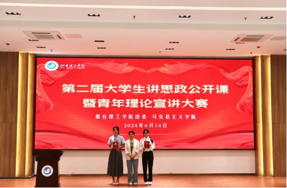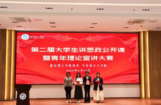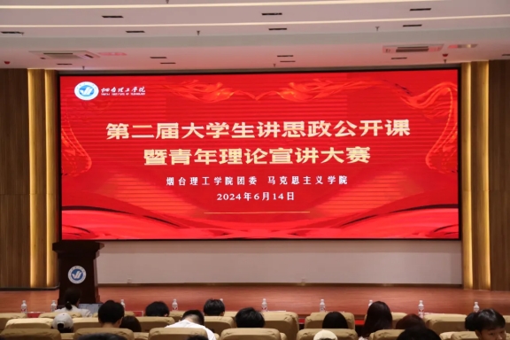 烟台理工学院校团委和马克思主义学院联合举办的“新思想引领新征程·新青年建功新时代”第二届大学生讲思政公开课暨青年理论宣讲大赛于6月14日下午2:30在综合楼六楼报告厅举行。马克思主义学院副院长邵菊欣、校团委副书记臧延云出席本次比赛,王琦、徐贝贝、王华妮三位老师担任评委,各二级学院师生代表参加比赛。