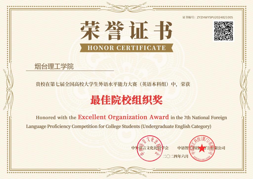 本次比赛采取网络赛形式进行,分为校级初赛和全国复赛两级选拔。比赛内容涵盖听力、写作、翻译、人文思辨等综合外语技能的考察,旨在鼓励学生在语言表达与实践应用等方面的全面发展。我校学子们踊跃参赛,认真备赛,态度积极,训练刻苦,稳扎稳打,为比赛积累了宝贵经验。本届大赛获奖者除获得赛事奖项证书以外,还获得了组委会颁发的配套翻译技能证书(BETT),这一荣誉不仅肯定了他们的外语能力,也标志着其职业技能的权威认证。“语言+技能”的双重认证拓宽了我校学生的就业前景,为大家的职业发展开辟了更为广阔的道路。