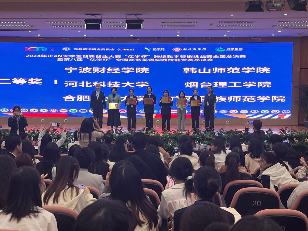 “亿学杯”全国商务英语实践技能大赛是由全国大学生创新创业实践联盟和中国国际商务行业商会商务英语研究委员会主办,福建亿学教育科技集团筹办的学科竞赛。该赛事涵盖了专业知识测试和主题演讲两个环节,要求选手们具备扎实的商务英语知识和实用技巧,以及良好的口语表达和跨文化沟通能力。2024 年“亿学杯”成功进入教育部 84 项白名单,其权威性和影响力进一步得到了提升。